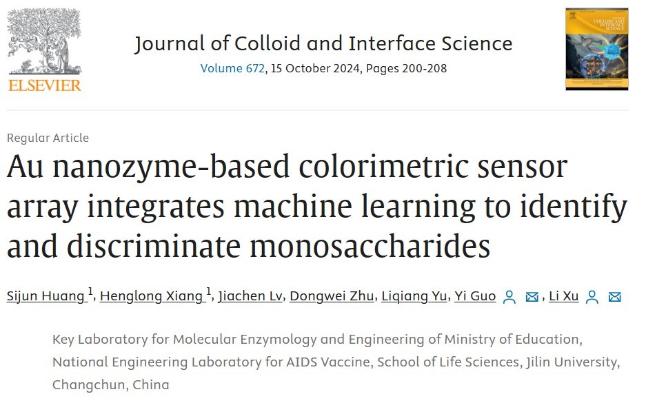 ✅雷竞技raybet在线-英雄联盟分子酶学工程教育部重点实验室徐力教授、郭轶教授团队报道了基于金纳米酶比色传感器阵列集成机器学习识别和区分单糖的方法。由于不同的单糖表现出不同的氧化还原特性,而金纳米酶可以应用O2、ABTS+•或[Ag(NH3)2]+作为电子受体,以不同的速度催化不同的单糖氧化,并引起不同的显色反应。以此建立的传感器阵列可以产生交叉响应信号,所收集的信号通过线性判别分析(LDA)和层次聚类分析(HCA)来实现不同的单糖或其混合物的区分。此外,可以应用基于传感器阵列的神经网络回归模型同时预测样品中不同单糖浓度。研究论文“Au nanozyme-based colorimetric sensor array integrates machine learning to identify and discriminate monosaccharides”发表在国际学术期刊《Journal of Colloid and Interface Science》上。论文第一完成单位为✅雷竞技raybet在线-英雄联盟,✅雷竞技raybet在线-英雄联盟黄斯俊博士后、相恒龙硕士为该论文的共同第一作者,徐力教授、郭轶教授为该论文的共同通讯作者。