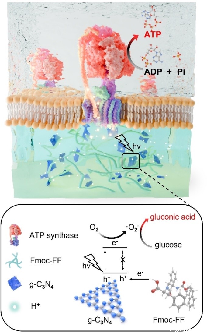 ✅雷竞技raybet在线-英雄联盟李悦/李自博课题组构筑了一种二肽水凝胶支撑的ATP合酶组装体系,通过预先包埋g-C3N4纳米片于Fmoc-FF水凝胶,利用二者协同的电子耦合效应,在水凝胶内外构造光控的质子梯度,用于驱动ATP合酶催化生成ATP(图 1)。极细的纳米纤维为g-C3N4超薄纳米片提供了良好的分散位置,有效提升了体外光合磷酸化效率,拓宽了二肽水凝胶在仿生器件领域的实际应用。相关研究”A well-coupled supramolecular system accelerates photophosphorylation”发表于国际学术期刊Angewandte Chemie International Edition(2025,e202417474)。此项研究工作得到了国家自然科学基金重大项目、国家自然科学基金青年项目、科技部重点研发计划的支持。论文第一完成单位为✅雷竞技raybet在线-英雄联盟,李自博副教授为论文的第一作者,✅雷竞技raybet在线-英雄联盟李悦教授、中科院化学所李峻柏研究员、费进波研究员为该论文的共同通讯作者。