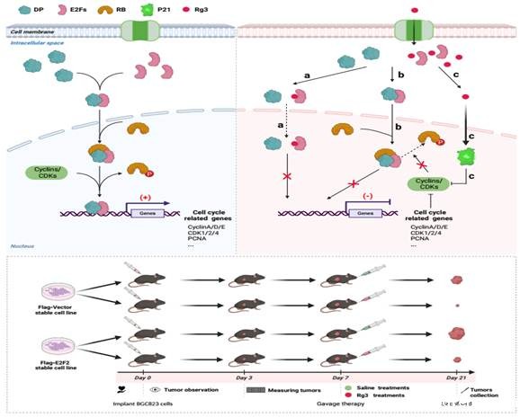 蔡勇教授/金景姬教授团队通过3D分子对接分析,预测Rg3可能与E2F1-3的二聚化结构域结合,并阻碍E2F-DP异源二聚体形成。进一步通过体外细胞热迁移分析(CETSA)、Rg3-PEGA pulldown结合蛋白质质谱分析,Luciferase activity以及体内小鼠成瘤实验等,证实Rg3通过阻断E2F-DP二聚体的形成,抑制细胞周期相关基因转录,进而诱导细胞周期停滞于G1/S期,促进细胞凋亡,最终抑制胃癌细胞增殖。该研究首次揭示Rg3通过破坏E2F-DP二聚体形成来发挥抗癌作用,为开发高E2F表达肿瘤治疗提供新方向。此项研究工作得到了国家自然科学基金、吉林省科技厅项目基金支持。论文第一完成单位为✅雷竞技raybet在线-英雄联盟,第一作者为✅雷竞技raybet在线-英雄联盟博士研究生李富强,长春中医药大学刘达教授、✅雷竞技raybet在线-英雄联盟蔡勇教授和金景姬教授为该论文的共同通讯作者。