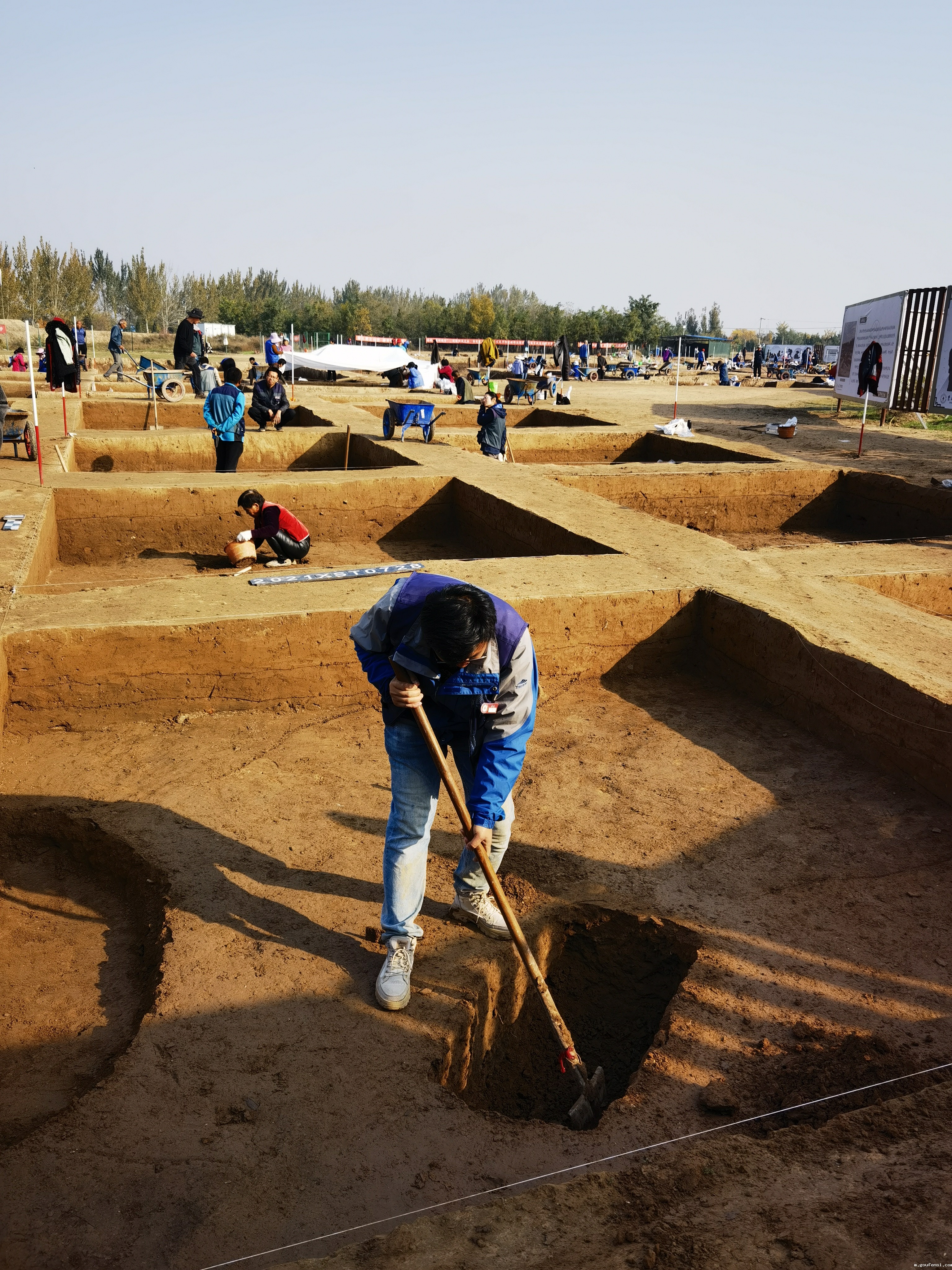 10月30日上午,考察小组赴考古工地走访调研,现场参观科研工作实况,现场工作人员详细介绍、细致讲解。在考古现场白宇提出,习近平总书记强调考古学科对于展现中华文明起源、发展脉络、灿烂成就和世界文明具有重要意义,学科发展质量关乎人才培养、关乎学术科研、关乎文化自信。要用党的建设引领考古学与生物学学科交叉向更深、更远发展,不断用党的建设加强队伍建设,创新活动模式、构建交叉学科发展氛围、建立科学机制、发挥示范效应,为实现学校跨越式发展、建设创新型国家提供思想基础、实践路径和坚实保障。让党旗在考古一线高高飘扬,在科研一线熠熠生辉。
