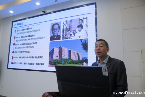 邢述从历史沿革和发展进程等方面介绍了生命科学学院的基本情况,着重阐述了生物学一流学科建设取得的成效,并详细介绍了学院在人才引进和国际合作方面的政策措施。