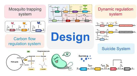 2021年Jilin_China团队由生命科学学院陈妍教授、侯阿澧副教授、詹杨副教授及孙博高级工程师四位导师共同指导,队员由来自生命科学学院、电子科学与工程学院及通信工程学院的15名同学组成。参赛题目为“Mosquiet”,该项目设计了一个基于动态调控策略的大肠杆菌生物产酸产氨诱蚊杀蚊装置,其核心思路是通过基因工程改造大肠杆菌,使其不断生产能够吸引蚊子的气味小分子——乙酸、L-乳酸、氨气,再通过电网杀死被吸引过来的蚊子。考虑到在家庭场景中的使用,团队专门设计了可以让工程菌转运并代谢蔗糖的蔗糖代谢系统。Mosquiet作为面向人类日常生活的参赛项目,拓展了杀蚊灭虫的新方法,对于科学灭蚊、环境保护具有积极意义。此外,今年的Jilin_China开展了多项社会实践及人文调查。团队还自主设计了供项目落地实施的硬件装置,最终以建模的方式呈现。
