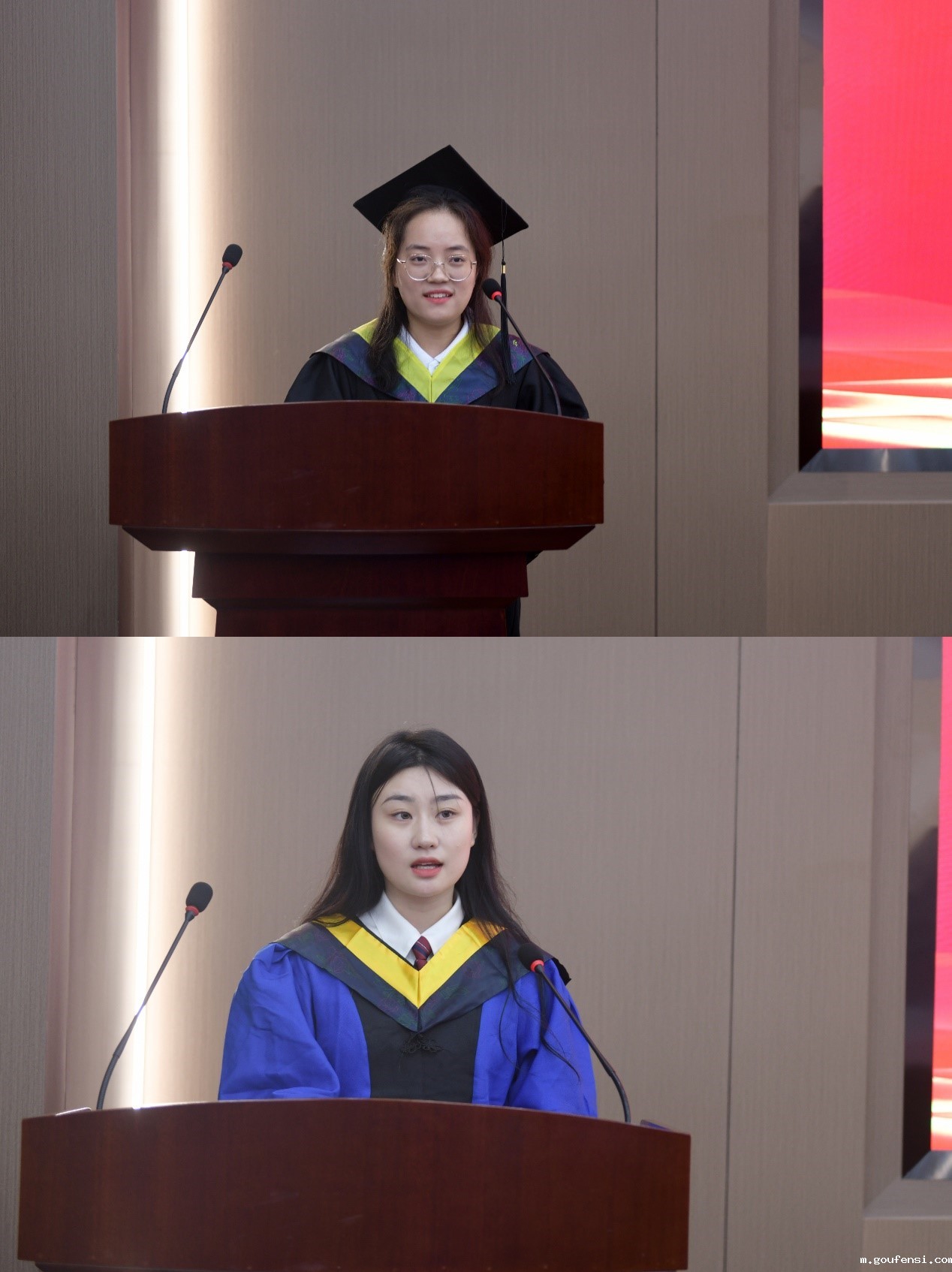 生物制药专业本科生关欣代表全体本科毕业生发言。关欣分享了从初入校园的心怀忐忑到今日踌躇满志的万千思绪回忆了从懵懂青涩的少年到风华正茂的青年的难忘时光寄语同学们将所学所得用于报效社会,为构建更美好的未来而努力奋斗;生物与医药专业硕士研究生姜雪代表全体研究生发言。她表示中国发展要靠广大青年挺膺担当,寄语同窗们厚植家国情怀、涵养进取品格,以奋斗姿态激扬青春,不负时代,不负华年,树立远大理想、练就过硬本领,为社会主义现代化建设贡献青春力量。2019级本科生班主任高仁钧代表全体教师发言。他通过自己身边的三个小故事表达了对同学们的殷切期盼,希望同学们能够刻苦奋斗,把握当下,珍惜青春,用年轻的头脑迸发出有创造力的想法,用年轻的双手把他们付诸于实际!更希望同学们能够永远心怀感恩,为中国生物事业添砖加瓦。